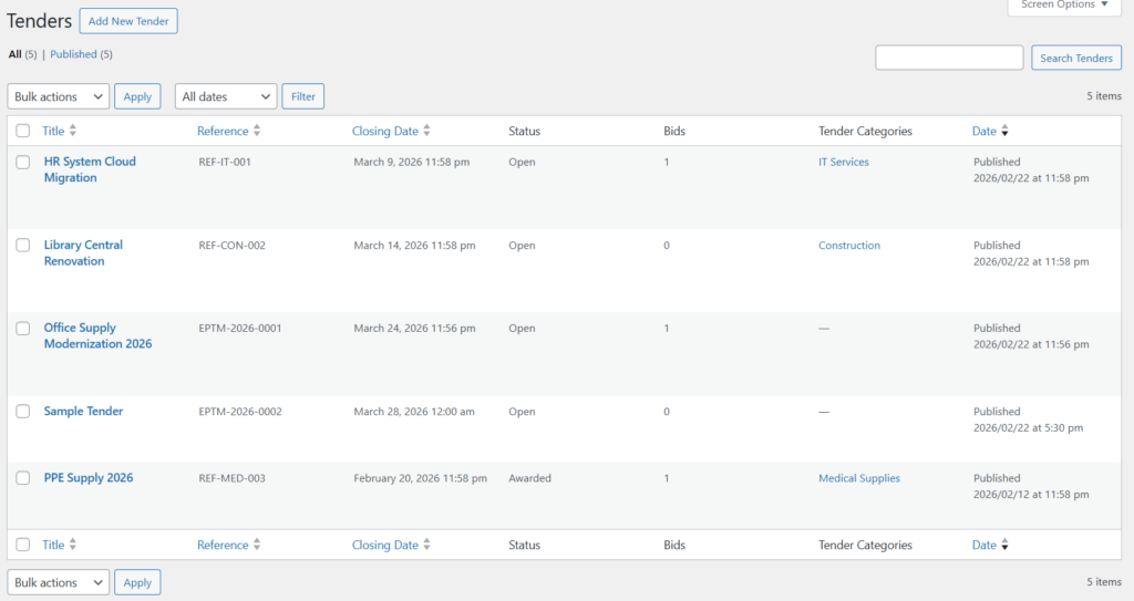Introducing the E-Procurement Tender Manager. A seamless solution built for WordPress to organize, track, and award bids in real-time.